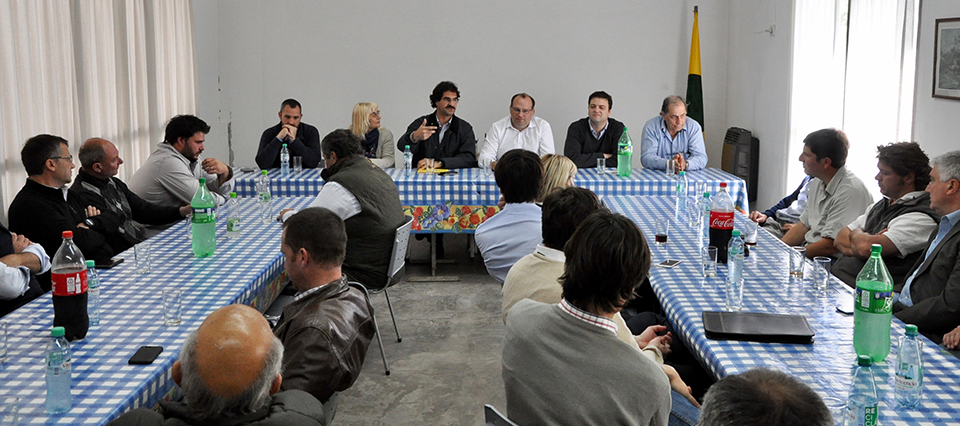 Sarquís junto con el Intendente local, Mariano Barroso, y el Secretario de Agricultura, Ganadería y Pesca de La Nación, Ricardo Negri mantuvieron un encuentro con productores.